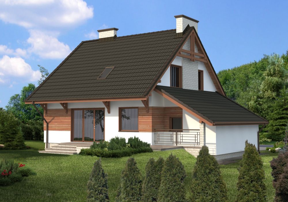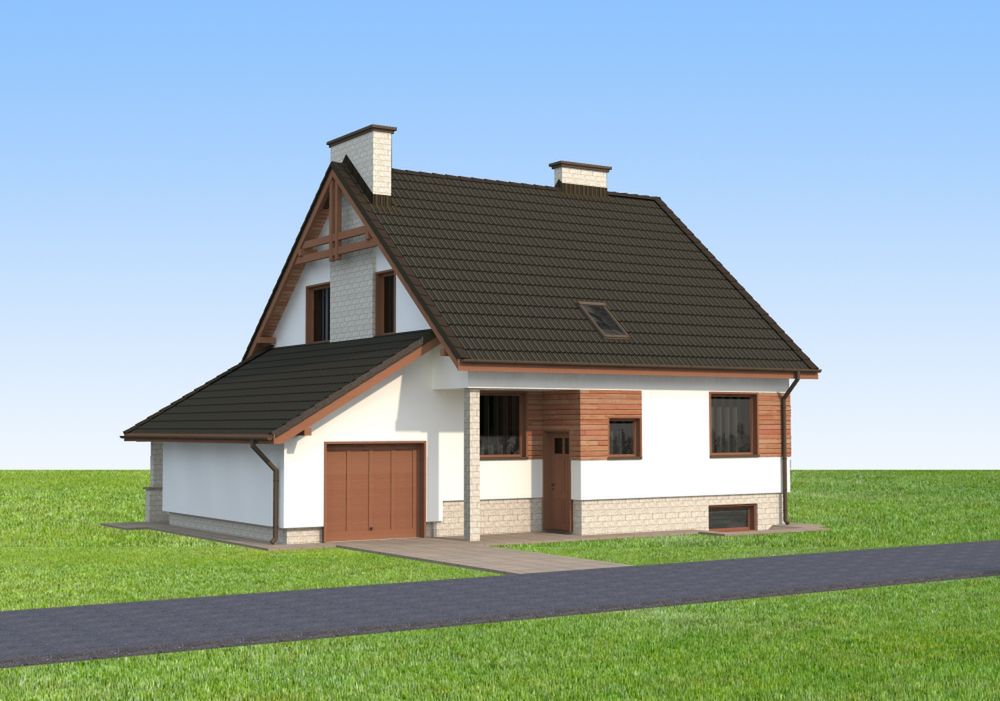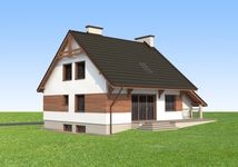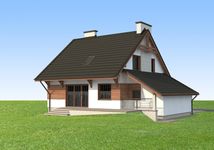 Graficzne opracowanie rzutów poglądowych widocznych na karcie projektu zostało wykonane przez Extradom.pl. Prezentowane przez Extradom.pl wizualizacje wykonane zostały przez autora projektu i należy poczytywać je jedynie za przykład i propozycję wykończenia, wizję architektoniczną autora projektu. Ostateczne wykończenie budynku może nastąpić na wiele sposobów. Szczegółowe rozwiązania zastosowane w oferowanej dokumentacji - w tym również ilość, lokalizacje i wygląd okien, drzwi, kominów - mogą w niewielkim stopniu różnić się od prezentowanej wizualizacji budynku.