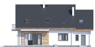 Graficzne opracowanie rzutów poglądowych widocznych na karcie projektu zostało wykonane przez Extradom.pl. Prezentowane przez Extradom.pl wizualizacje wykonane zostały przez autora projektu i należy poczytywać je jedynie za przykład i propozycję wykończenia, wizję architektoniczną autora projektu. Ostateczne wykończenie budynku może nastąpić na wiele sposobów. Szczegółowe rozwiązania zastosowane w oferowanej dokumentacji - w tym również ilość, lokalizacje i wygląd okien, drzwi, kominów - mogą w niewielkim stopniu różnić się od prezentowanej wizualizacji budynku.