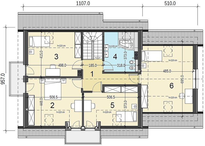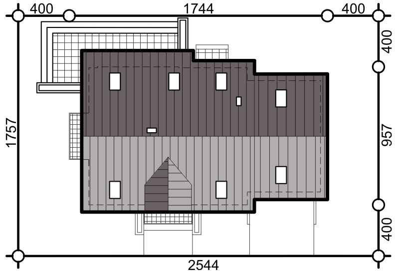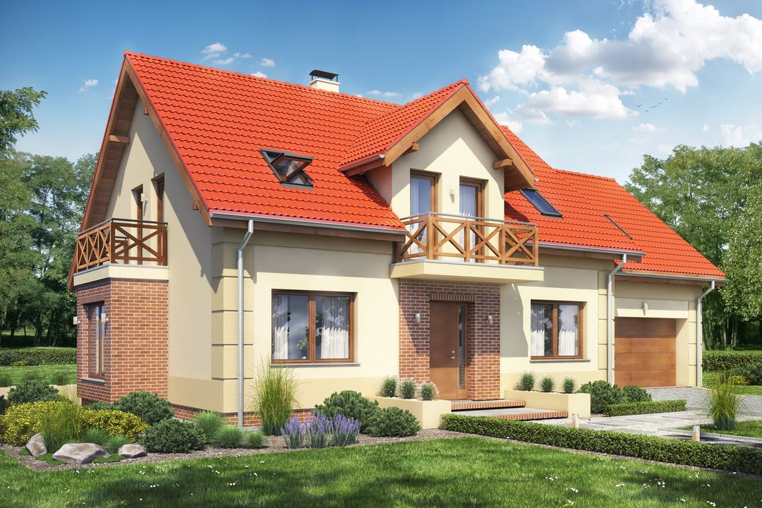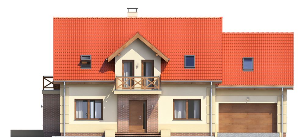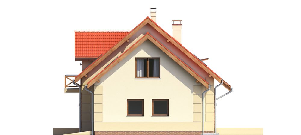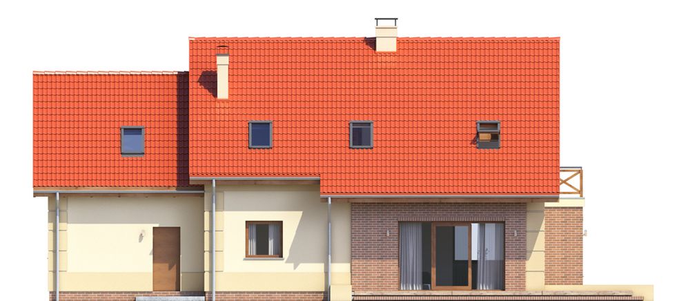 Graficzne opracowanie rzutów poglądowych widocznych na karcie projektu zostało wykonane przez Extradom.pl. Prezentowane przez Extradom.pl wizualizacje wykonane zostały przez autora projektu i należy poczytywać je jedynie za przykład i propozycję wykończenia, wizję architektoniczną autora projektu. Ostateczne wykończenie budynku może nastąpić na wiele sposobów. Szczegółowe rozwiązania zastosowane w oferowanej dokumentacji - w tym również ilość, lokalizacje i wygląd okien, drzwi, kominów - mogą w niewielkim stopniu różnić się od prezentowanej wizualizacji budynku.