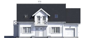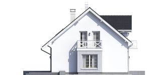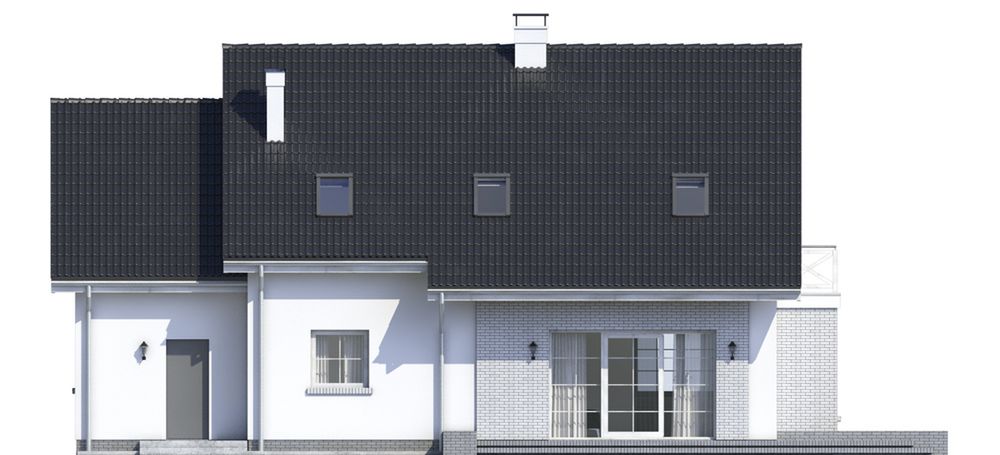 Graficzne opracowanie rzutów poglądowych widocznych na karcie projektu zostało wykonane przez Extradom.pl. Prezentowane przez Extradom.pl wizualizacje wykonane zostały przez autora projektu i należy poczytywać je jedynie za przykład i propozycję wykończenia, wizję architektoniczną autora projektu. Ostateczne wykończenie budynku może nastąpić na wiele sposobów. Szczegółowe rozwiązania zastosowane w oferowanej dokumentacji - w tym również ilość, lokalizacje i wygląd okien, drzwi, kominów - mogą w niewielkim stopniu różnić się od prezentowanej wizualizacji budynku.
