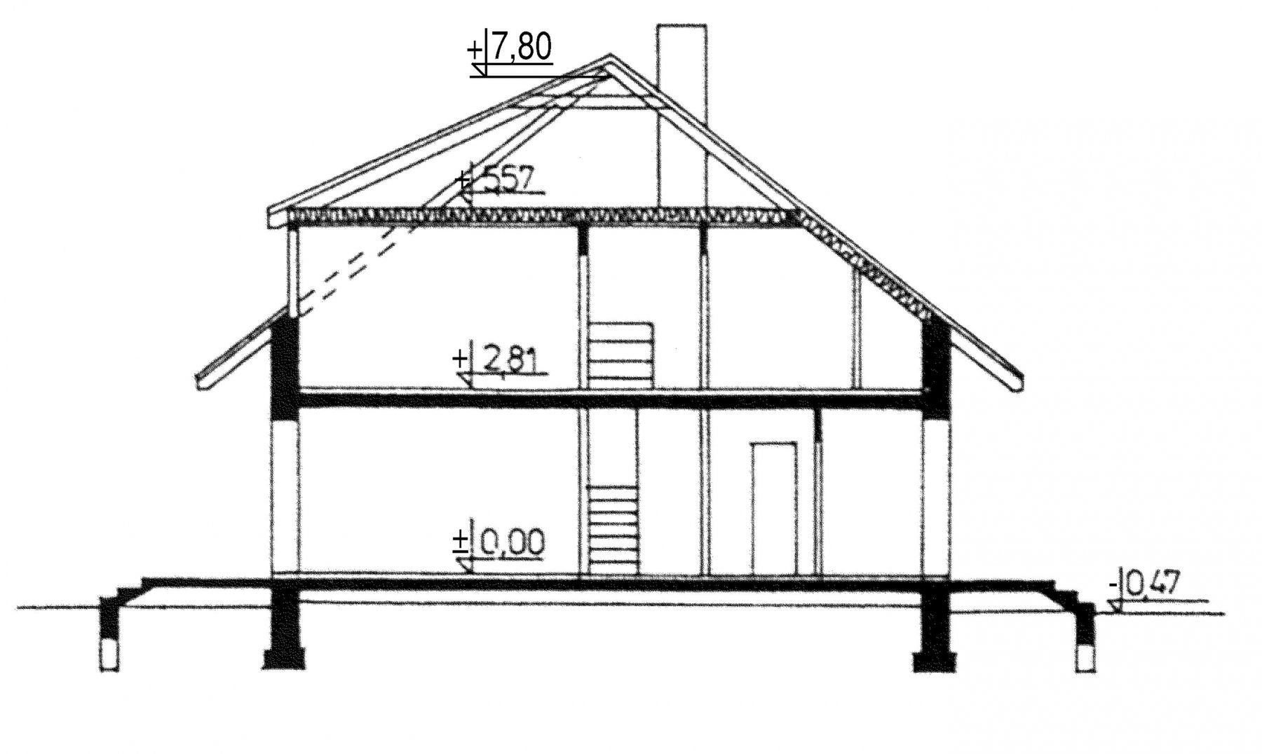 Ściany: warstwowe, ceramiczne. Stropy: gęstożebrowe. Dach: o konstrukcji drewnianej, pokryty dachówką blaszaną lub bitumiczną.