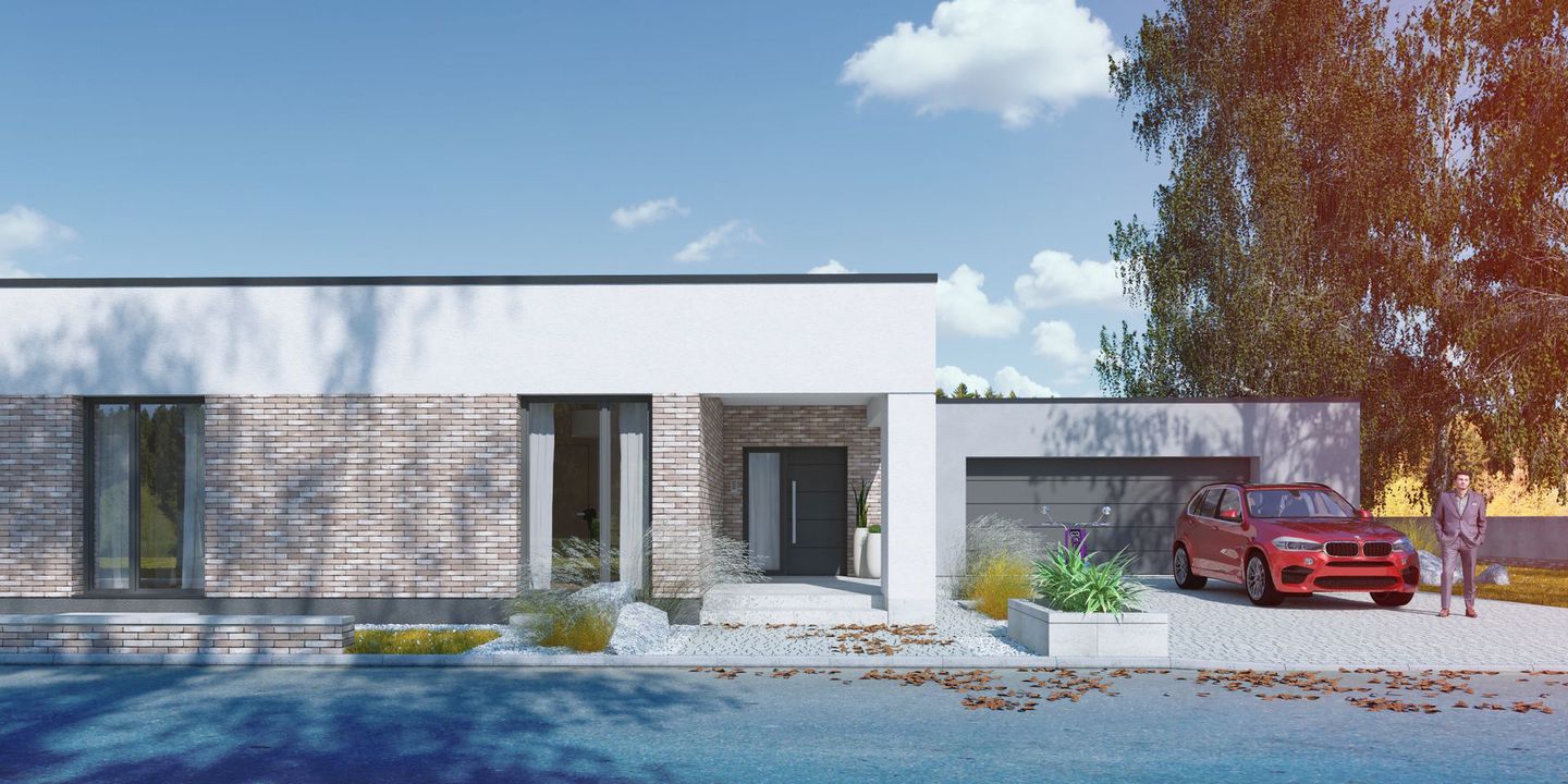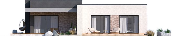Graficzne opracowanie rzutów poglądowych widocznych na karcie projektu zostało wykonane przez Extradom.pl. Prezentowane przez Extradom.pl wizualizacje wykonane zostały przez autora projektu i należy poczytywać je jedynie za przykład i propozycję wykończenia, wizję architektoniczną autora projektu. Ostateczne wykończenie budynku może nastąpić na wiele sposobów. Szczegółowe rozwiązania zastosowane w oferowanej dokumentacji - w tym również ilość, lokalizacje i wygląd okien, drzwi, kominów - mogą w niewielkim stopniu różnić się od prezentowanej wizualizacji budynku.