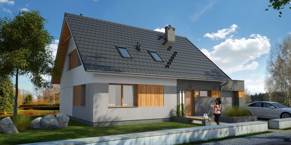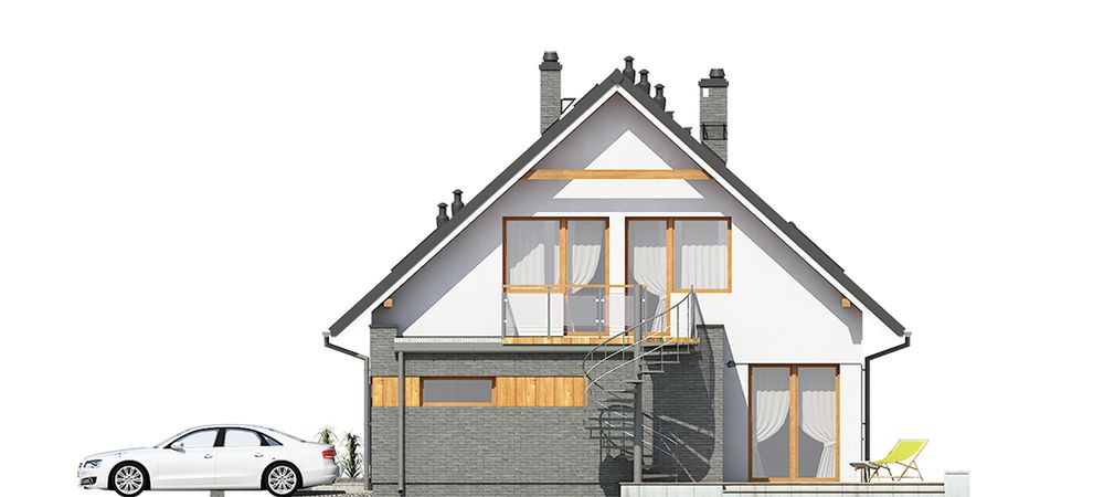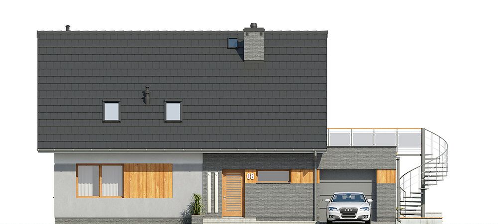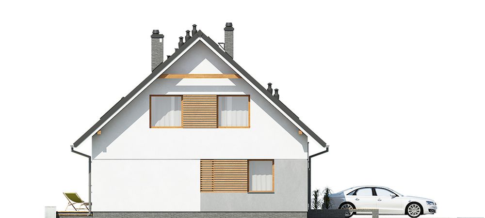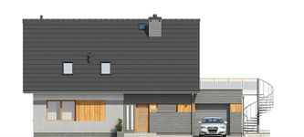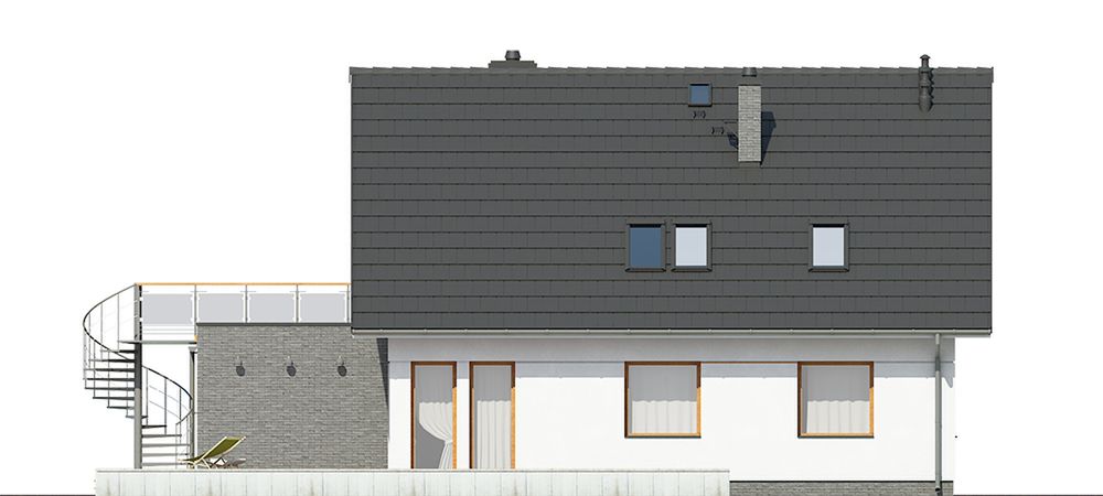 Graficzne opracowanie rzutów poglądowych widocznych na karcie projektu zostało wykonane przez Extradom.pl. Prezentowane przez Extradom.pl wizualizacje wykonane zostały przez autora projektu i należy poczytywać je jedynie za przykład i propozycję wykończenia, wizję architektoniczną autora projektu. Ostateczne wykończenie budynku może nastąpić na wiele sposobów. Szczegółowe rozwiązania zastosowane w oferowanej dokumentacji - w tym również ilość, lokalizacje i wygląd okien, drzwi, kominów - mogą w niewielkim stopniu różnić się od prezentowanej wizualizacji budynku.