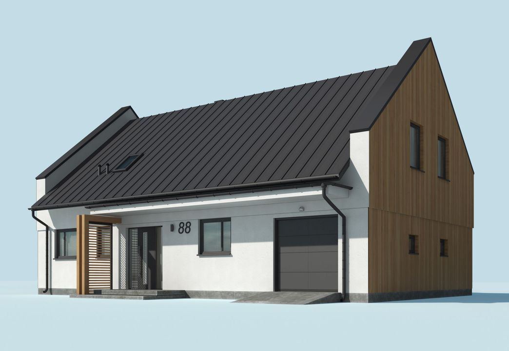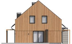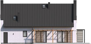 Graficzne opracowanie rzutów poglądowych widocznych na karcie projektu zostało wykonane przez Extradom.pl. Prezentowane przez Extradom.pl wizualizacje wykonane zostały przez autora projektu i należy poczytywać je jedynie za przykład i propozycję wykończenia, wizję architektoniczną autora projektu. Ostateczne wykończenie budynku może nastąpić na wiele sposobów. Szczegółowe rozwiązania zastosowane w oferowanej dokumentacji - w tym również ilość, lokalizacje i wygląd okien, drzwi, kominów - mogą w niewielkim stopniu różnić się od prezentowanej wizualizacji budynku.
