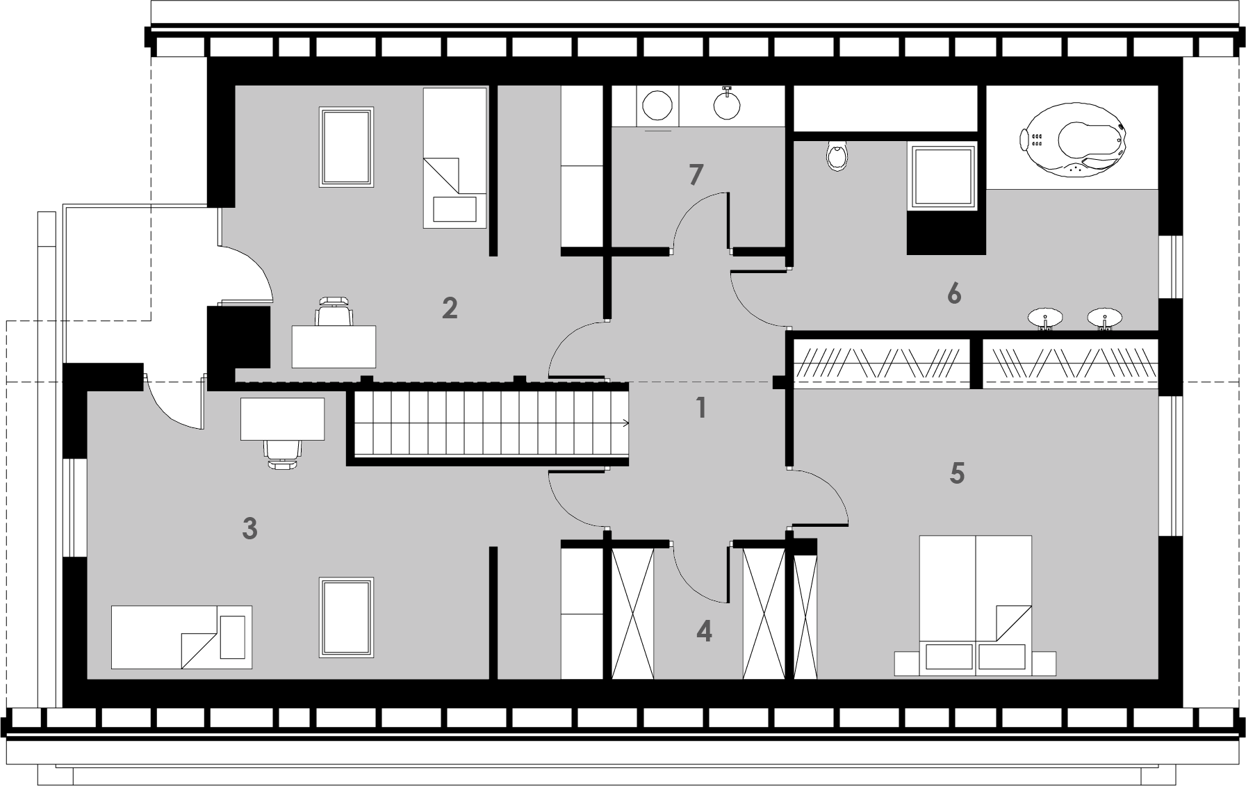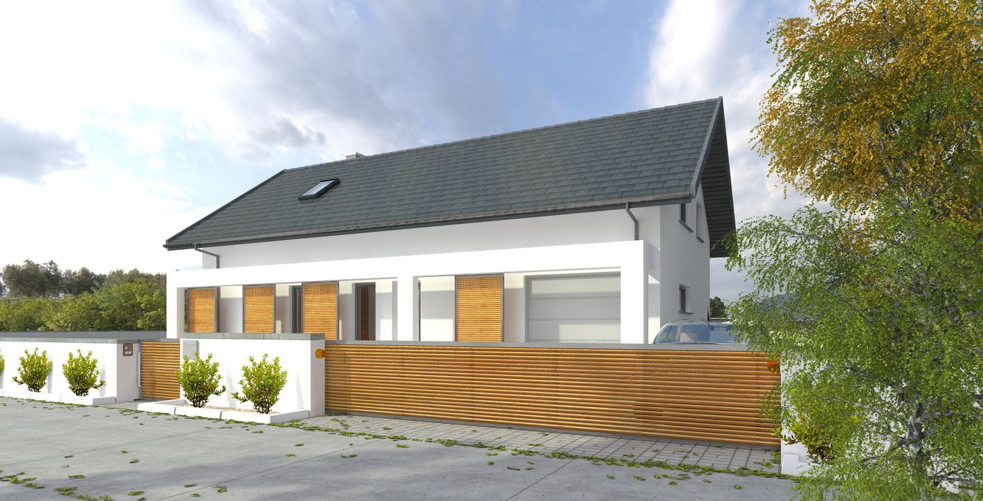 Graficzne opracowanie rzutów poglądowych widocznych na karcie projektu zostało wykonane przez Extradom.pl. Prezentowane przez Extradom.pl wizualizacje wykonane zostały przez autora projektu i należy poczytywać je jedynie za przykład i propozycję wykończenia, wizję architektoniczną autora projektu. Ostateczne wykończenie budynku może nastąpić na wiele sposobów. Szczegółowe rozwiązania zastosowane w oferowanej dokumentacji - w tym również ilość, lokalizacje i wygląd okien, drzwi, kominów - mogą w niewielkim stopniu różnić się od prezentowanej wizualizacji budynku.