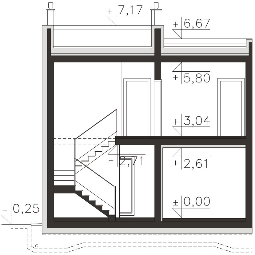 Graficzne opracowanie rzutów poglądowych widocznych na karcie projektu zostało wykonane przez Extradom.pl. Prezentowane przez Extradom.pl wizualizacje wykonane zostały przez autora projektu i należy poczytywać je jedynie za przykład i propozycję wykończenia, wizję architektoniczną autora projektu. Ostateczne wykończenie budynku może nastąpić na wiele sposobów. Szczegółowe rozwiązania zastosowane w oferowanej dokumentacji - w tym również ilość, lokalizacje i wygląd okien, drzwi, kominów - mogą w niewielkim stopniu różnić się od prezentowanej wizualizacji budynku.