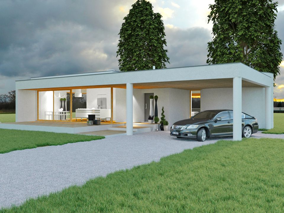 Ławy fundamentowe ze ścianami fundamentowymi z bloczków betonowych. Ściany zewnętrzne: YTONG ENERGO 48 cm U-0,19. Ściany zewnętrzne G-K 12 cm. Dach: stropodach płaski, kryty membraną wodoszczelną odporną na UV. Elewacje: tynk akrylowy.