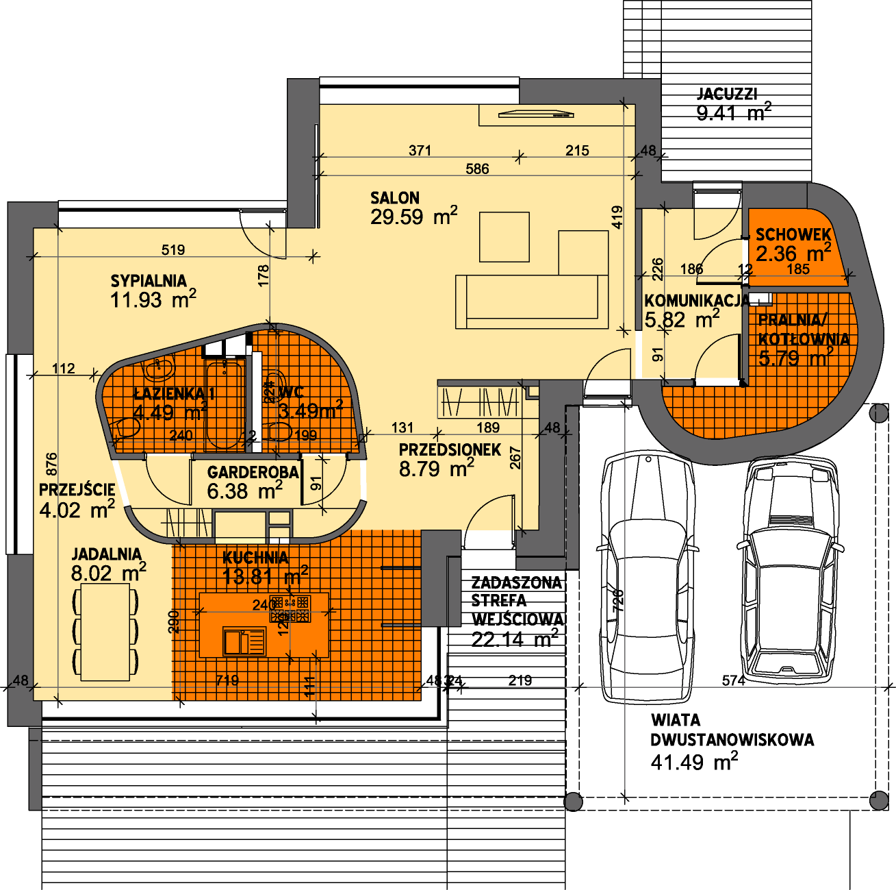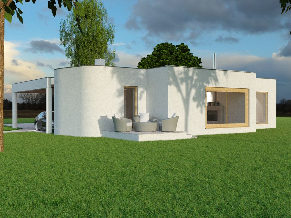 Graficzne opracowanie rzutów poglądowych widocznych na karcie projektu zostało wykonane przez Extradom.pl. Prezentowane przez Extradom.pl wizualizacje wykonane zostały przez autora projektu i należy poczytywać je jedynie za przykład i propozycję wykończenia, wizję architektoniczną autora projektu. Ostateczne wykończenie budynku może nastąpić na wiele sposobów. Szczegółowe rozwiązania zastosowane w oferowanej dokumentacji - w tym również ilość, lokalizacje i wygląd okien, drzwi, kominów - mogą w niewielkim stopniu różnić się od prezentowanej wizualizacji budynku.