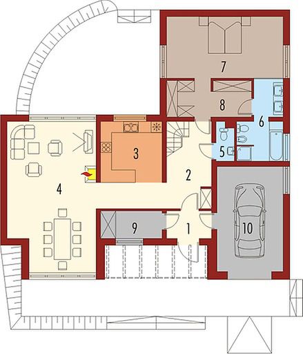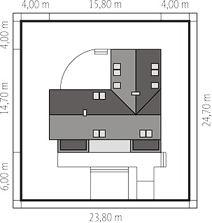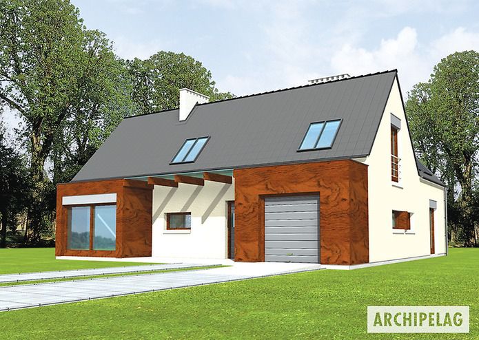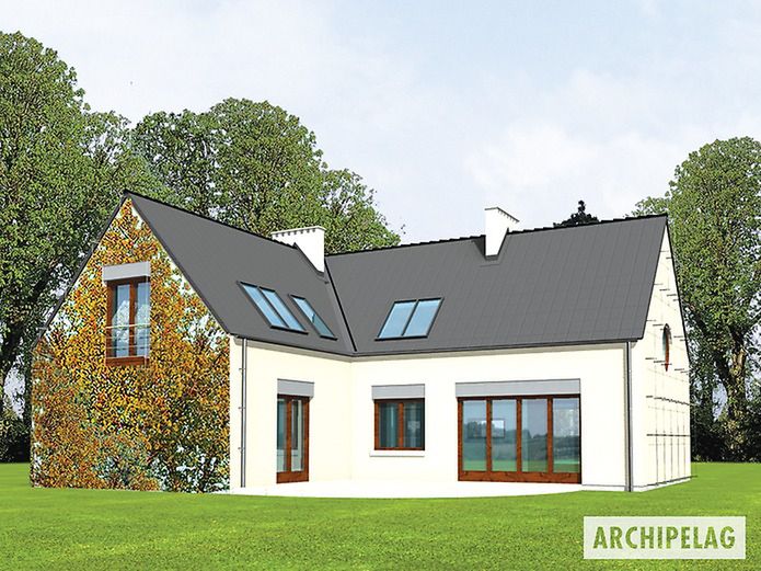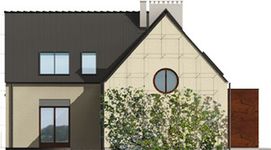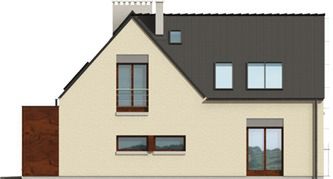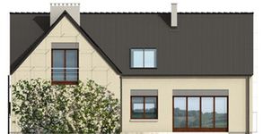 Graficzne opracowanie rzutów poglądowych widocznych na karcie projektu zostało wykonane przez Extradom.pl. Prezentowane przez Extradom.pl wizualizacje wykonane zostały przez autora projektu i należy poczytywać je jedynie za przykład i propozycję wykończenia, wizję architektoniczną autora projektu. Ostateczne wykończenie budynku może nastąpić na wiele sposobów. Szczegółowe rozwiązania zastosowane w oferowanej dokumentacji - w tym również ilość, lokalizacje i wygląd okien, drzwi, kominów - mogą w niewielkim stopniu różnić się od prezentowanej wizualizacji budynku.