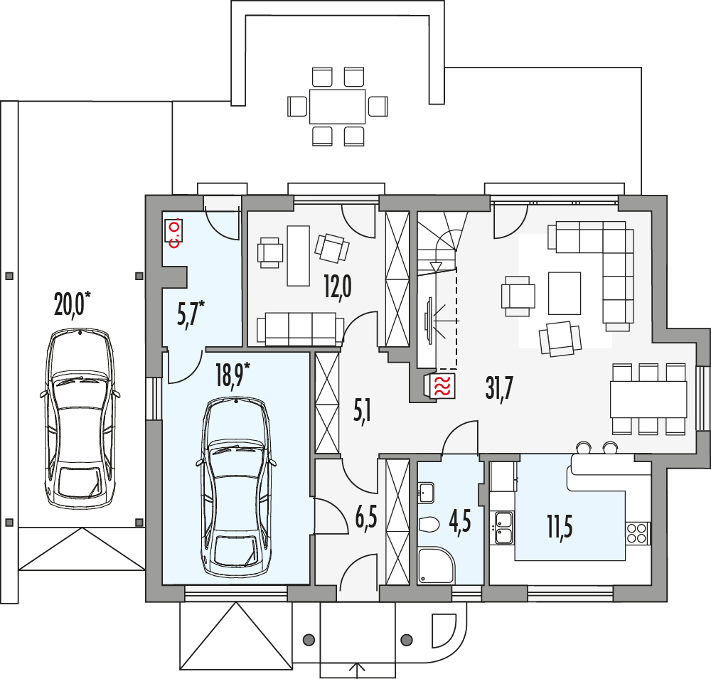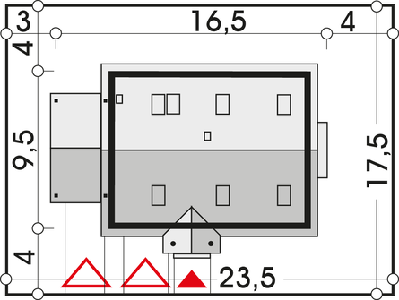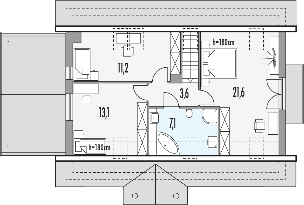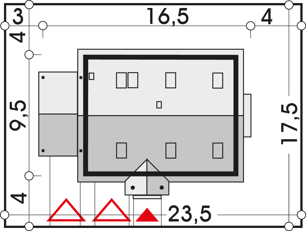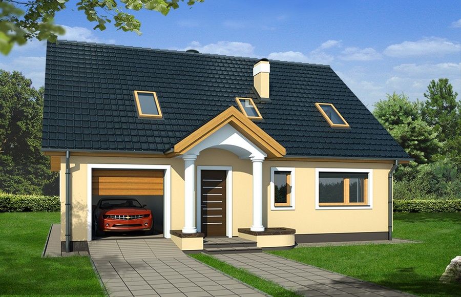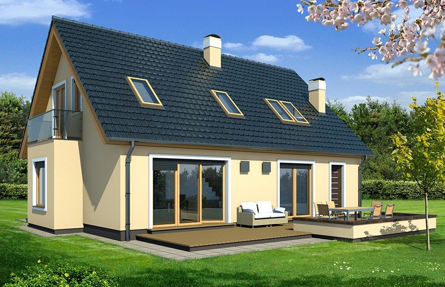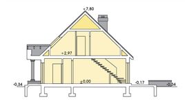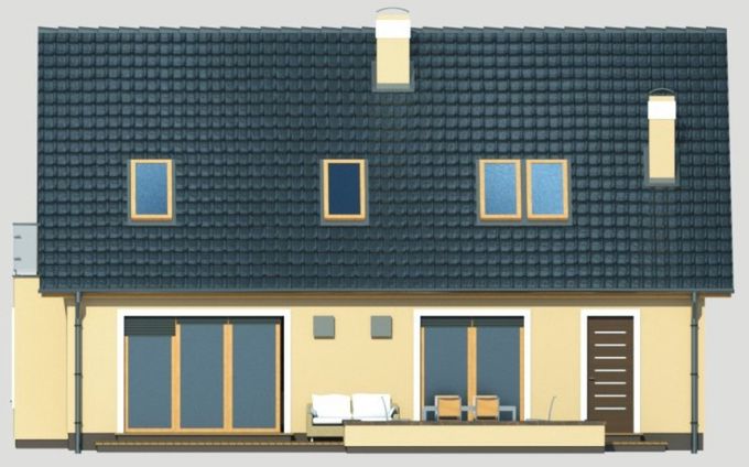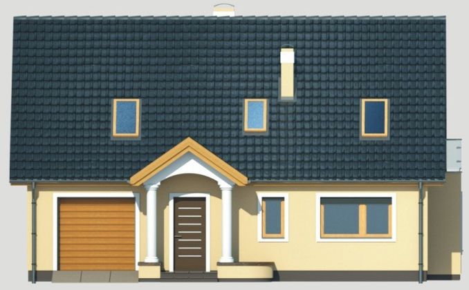 Graficzne opracowanie rzutów poglądowych widocznych na karcie projektu zostało wykonane przez Extradom.pl. Prezentowane przez Extradom.pl wizualizacje wykonane zostały przez autora projektu i należy poczytywać je jedynie za przykład i propozycję wykończenia, wizję architektoniczną autora projektu. Ostateczne wykończenie budynku może nastąpić na wiele sposobów. Szczegółowe rozwiązania zastosowane w oferowanej dokumentacji - w tym również ilość, lokalizacje i wygląd okien, drzwi, kominów - mogą w niewielkim stopniu różnić się od prezentowanej wizualizacji budynku.