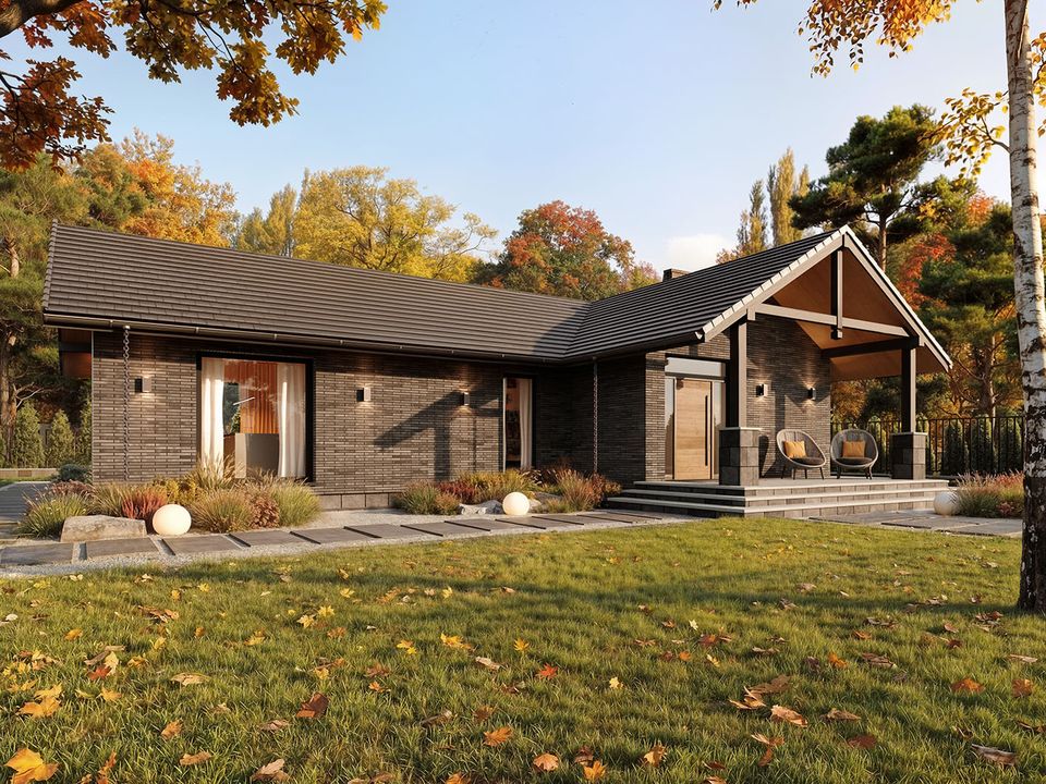 Graficzne opracowanie rzutów poglądowych widocznych na karcie projektu zostało wykonane przez Extradom.pl. Prezentowane przez Extradom.pl wizualizacje wykonane zostały przez autora projektu i należy poczytywać je jedynie za przykład i propozycję wykończenia, wizję architektoniczną autora projektu. Ostateczne wykończenie budynku może nastąpić na wiele sposobów. Szczegółowe rozwiązania zastosowane w oferowanej dokumentacji - w tym również ilość, lokalizacje i wygląd okien, drzwi, kominów - mogą w niewielkim stopniu różnić się od prezentowanej wizualizacji budynku.