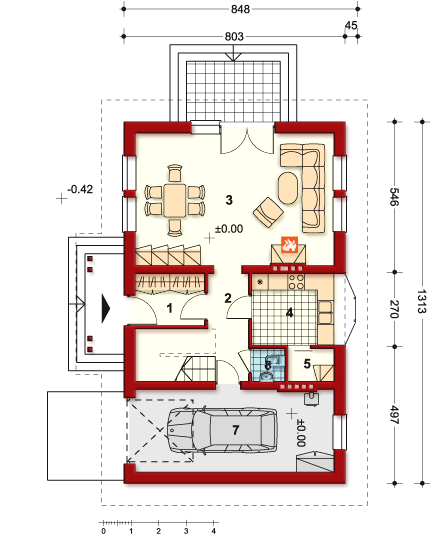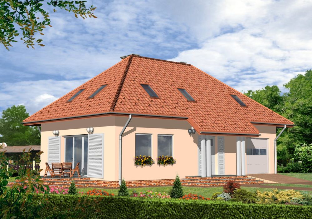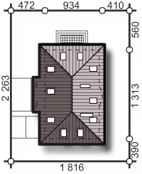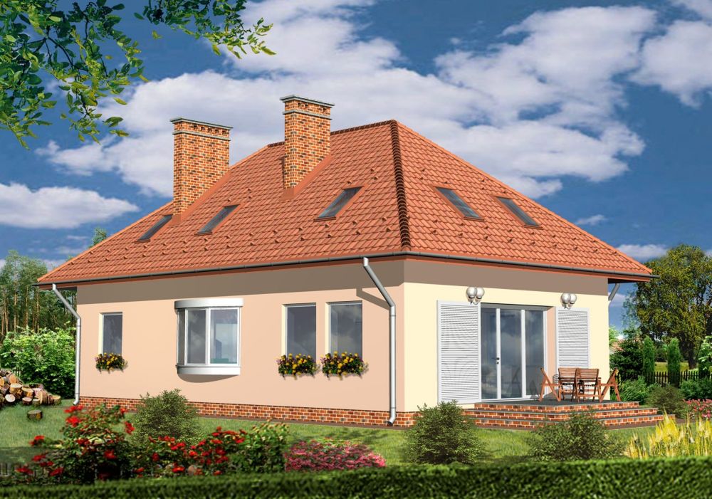 Graficzne opracowanie rzutów poglądowych widocznych na karcie projektu zostało wykonane przez Extradom.pl. Prezentowane przez Extradom.pl wizualizacje wykonane zostały przez autora projektu i należy poczytywać je jedynie za przykład i propozycję wykończenia, wizję architektoniczną autora projektu. Ostateczne wykończenie budynku może nastąpić na wiele sposobów. Szczegółowe rozwiązania zastosowane w oferowanej dokumentacji - w tym również ilość, lokalizacje i wygląd okien, drzwi, kominów - mogą w niewielkim stopniu różnić się od prezentowanej wizualizacji budynku.