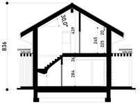 ściany: bloczek z betonu komórkowego H+H 24 cm, wełna mineralna 20 cm, tynk lub szalunek drewniany. strop: płyta żelbetowa. ścianka kolankowa: 245 cm, pod krokiew 225 cm. dach: dwuspadowy, nachylenie 30 st, więźba drewniana, blacha na rąbek stojący. ogrzewanie podłogowe: zastosowano we wszystkich pomieszczeniach mieszkalnych. wentylacja: grawitacyjna. schody wewnętrzne: drewniane.