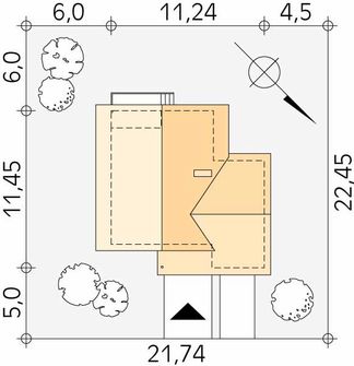 Graficzne opracowanie rzutów poglądowych widocznych na karcie projektu zostało wykonane przez Extradom.pl. Prezentowane przez Extradom.pl wizualizacje wykonane zostały przez autora projektu i należy poczytywać je jedynie za przykład i propozycję wykończenia, wizję architektoniczną autora projektu. Ostateczne wykończenie budynku może nastąpić na wiele sposobów. Szczegółowe rozwiązania zastosowane w oferowanej dokumentacji - w tym również ilość, lokalizacje i wygląd okien, drzwi, kominów - mogą w niewielkim stopniu różnić się od prezentowanej wizualizacji budynku.