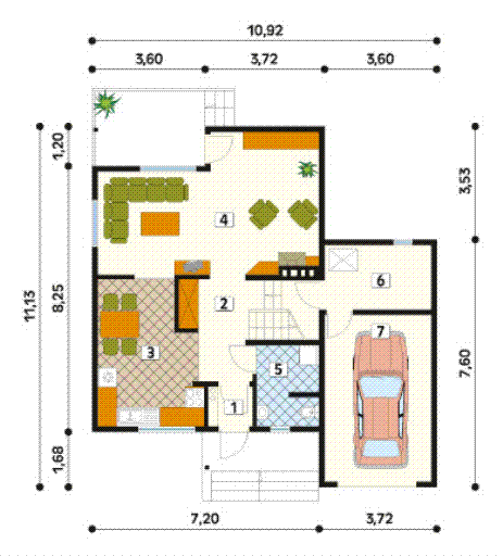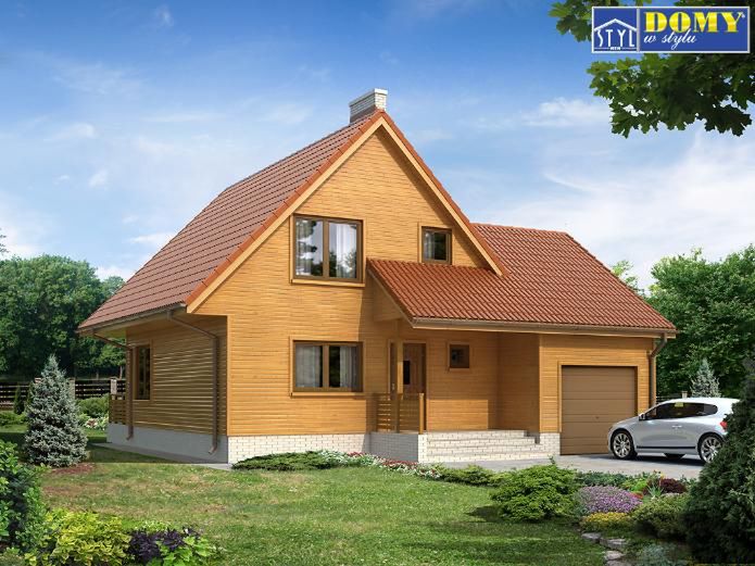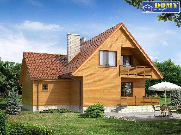 Graficzne opracowanie rzutów poglądowych widocznych na karcie projektu zostało wykonane przez Extradom.pl. Prezentowane przez Extradom.pl wizualizacje wykonane zostały przez autora projektu i należy poczytywać je jedynie za przykład i propozycję wykończenia, wizję architektoniczną autora projektu. Ostateczne wykończenie budynku może nastąpić na wiele sposobów. Szczegółowe rozwiązania zastosowane w oferowanej dokumentacji - w tym również ilość, lokalizacje i wygląd okien, drzwi, kominów - mogą w niewielkim stopniu różnić się od prezentowanej wizualizacji budynku.