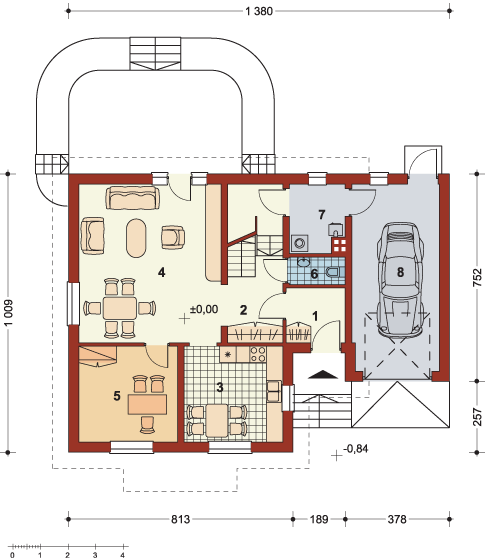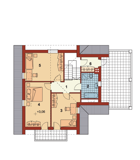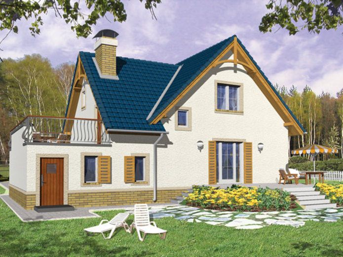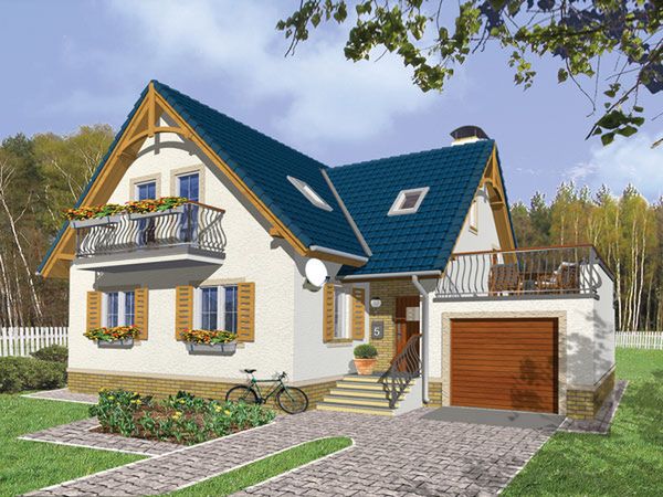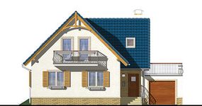 Graficzne opracowanie rzutów poglądowych widocznych na karcie projektu zostało wykonane przez Extradom.pl. Prezentowane przez Extradom.pl wizualizacje wykonane zostały przez autora projektu i należy poczytywać je jedynie za przykład i propozycję wykończenia, wizję architektoniczną autora projektu. Ostateczne wykończenie budynku może nastąpić na wiele sposobów. Szczegółowe rozwiązania zastosowane w oferowanej dokumentacji - w tym również ilość, lokalizacje i wygląd okien, drzwi, kominów - mogą w niewielkim stopniu różnić się od prezentowanej wizualizacji budynku.