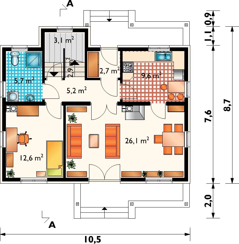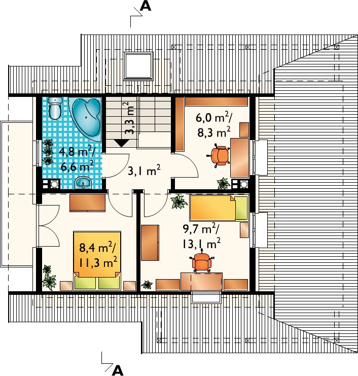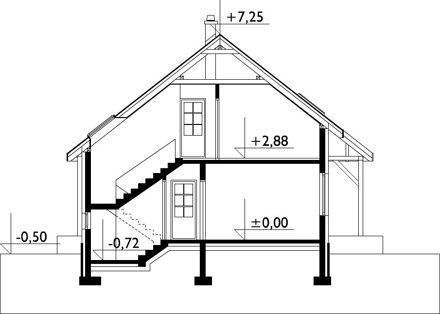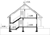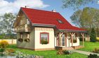 Graficzne opracowanie rzutów poglądowych widocznych na karcie projektu zostało wykonane przez Extradom.pl. Prezentowane przez Extradom.pl wizualizacje wykonane zostały przez autora projektu i należy poczytywać je jedynie za przykład i propozycję wykończenia, wizję architektoniczną autora projektu. Ostateczne wykończenie budynku może nastąpić na wiele sposobów. Szczegółowe rozwiązania zastosowane w oferowanej dokumentacji - w tym również ilość, lokalizacje i wygląd okien, drzwi, kominów - mogą w niewielkim stopniu różnić się od prezentowanej wizualizacji budynku.