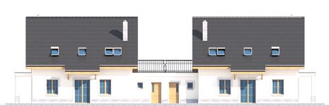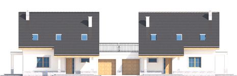 Projekt wymaga aktualizacji. Przy zakupie projektu należy zapłacić 50% zaliczki. Zaliczka jest bezzwrotna w przypadku zwrotu lub rezygnacji z zamówienia. Budynek dwulokalowy posadowiony na wspólnym fundamencie. Jeśli planujesz budowę na osobnych działkach zamów pojedyncze segmenty: podstawa + lustro.