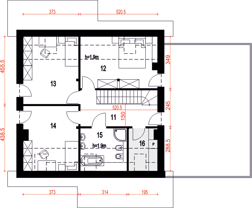 Graficzne opracowanie rzutów poglądowych widocznych na karcie projektu zostało wykonane przez Extradom.pl. Prezentowane przez Extradom.pl wizualizacje wykonane zostały przez autora projektu i należy poczytywać je jedynie za przykład i propozycję wykończenia, wizję architektoniczną autora projektu. Ostateczne wykończenie budynku może nastąpić na wiele sposobów. Szczegółowe rozwiązania zastosowane w oferowanej dokumentacji - w tym również ilość, lokalizacje i wygląd okien, drzwi, kominów - mogą w niewielkim stopniu różnić się od prezentowanej wizualizacji budynku.