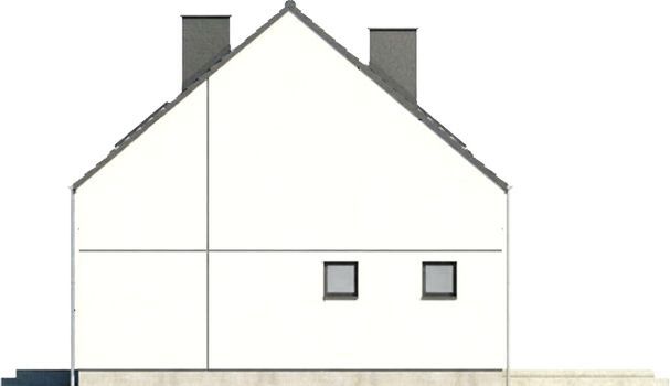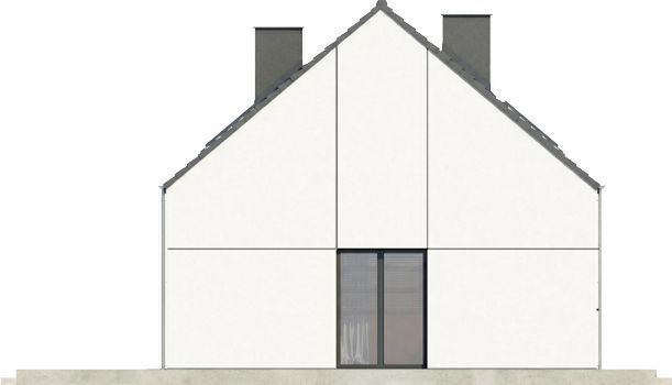 Projekt domu zakłada zwartą bryłę i prosty dach dwuspadowy, co obniża koszty budowy, upraszcza wykonanie i poprawia energooszczędność. Garaż jednostanowiskowy wkomponowany w bryłę budynku zachowuje spójność architektoniczną, a taras stanowi naturalne przedłużenie salonu, łącząc wnętrze z ogrodem i tworząc przestrzeń do wypoczynku. W projekcie wykorzystano trwałe i sprawdzone technologie: ściany z gazobetonu z dodatkowym ociepleniem, strop gęstożebrowy oraz dach pokryty dachówką ceramiczną lub betonową. Elewacja z tynku strukturalnego z boniowaniem nadaje budynkowi nowoczesny wygląd, a zastosowane materiały zapewniają dobrą izolację, trwałość i niższe koszty eksploatacji.