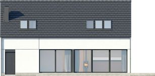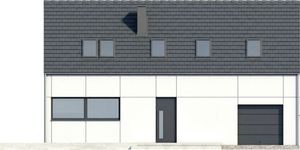 Graficzne opracowanie rzutów poglądowych widocznych na karcie projektu zostało wykonane przez Extradom.pl. Prezentowane przez Extradom.pl wizualizacje wykonane zostały przez autora projektu i należy poczytywać je jedynie za przykład i propozycję wykończenia, wizję architektoniczną autora projektu. Ostateczne wykończenie budynku może nastąpić na wiele sposobów. Szczegółowe rozwiązania zastosowane w oferowanej dokumentacji - w tym również ilość, lokalizacje i wygląd okien, drzwi, kominów - mogą w niewielkim stopniu różnić się od prezentowanej wizualizacji budynku.