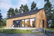 Projekt gotowy Studio 54 to ściany z gazobetonu z dociepleniem styropianem oraz fasada drewniana. Nad częścią parteru jest wykonany strop gęstożebrowy, co pozwala na uzyskanie jeszcze trochę powierzchni nieużytkowej lub po zaadaptowaniu użytkowej na górze. Więżbę mamy drewnianą i jej niektóre elementy są także widoczne we wnętrzu. Jako pokrycie dachu polecamy płaską, prostokątną dachówkę zakładkową.