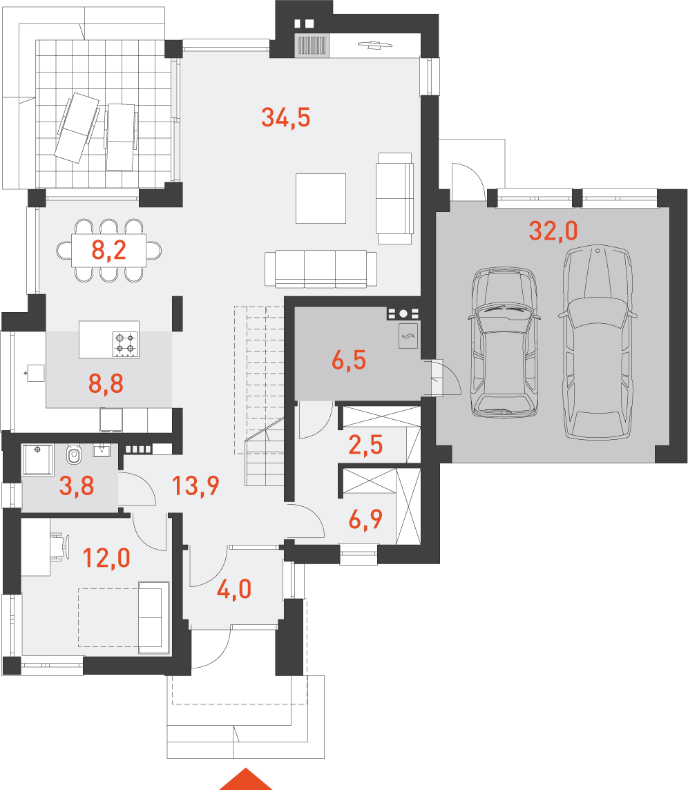 Ściany: pustak ceramiczny + styropian - na etapie adaptacji projektu istnieje możliwość zamiany pustaka ceramicznego na inny materiał o podobnych parametrach wytrzymałosciowych, np. na bloczek silikatowy. Elewacja: tynk, wielkoformatowe płyty kamienne - wielkoformatowe płyty kamienne wykorzystane jako materiał dekoracyjny można zamienić na etapie adaptacji projektu na inny, np. na płytkę klinkierową. Stropy: żelbetowe wylewane - na etapie adaptacji projektu istnieje możliwość zmiany technologii stropu na gęstożebrowy lub prefabrykowany. Schody: konstrukcji lekkiej - konstrukcja oraz materiały wykończeniowe schodów przewidziane do indywidualnej aranżacji. Dach: dachówka ceramiczna lub cementowa - konstrukcja więźby przewidziana pod pokrycie ciężkie dla I strefy wiatrowej i II strefy śniegowej.