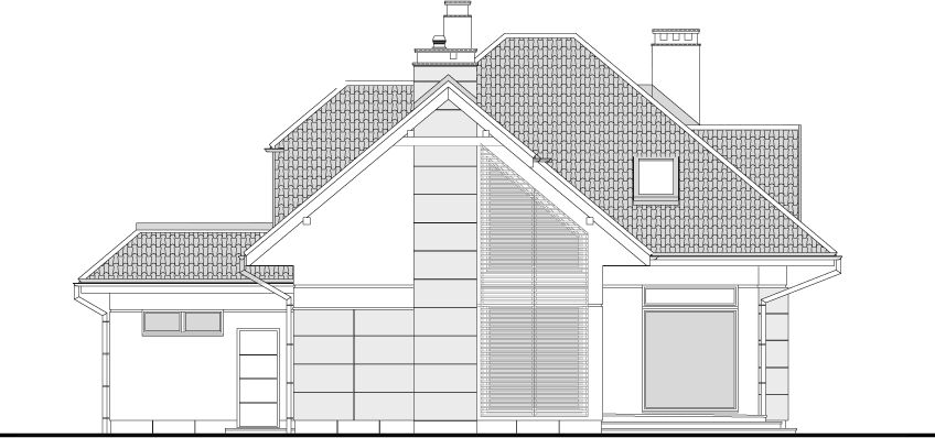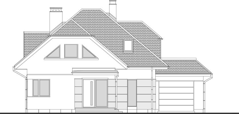 Ściany: pustak ceramiczny + styropian - na etapie adaptacji projektu istnieje możliwość zamiany pustaka ceramicznego na inny materiał o podobnych parametrach wytrzymałosciowych, np. na bloczek silikatowy. Elewacja: tynk, wielkoformatowe płyty kamienne - wielkoformatowe płyty kamienne wykorzystane jako materiał dekoracyjny można zamienić na etapie adaptacji projektu na inny, np. na płytkę klinkierową. Stropy: żelbetowe wylewane - na etapie adaptacji projektu istnieje możliwość zmiany technologii stropu na gęstożebrowy lub prefabrykowany. Schody: konstrukcji lekkiej - konstrukcja oraz materiały wykończeniowe schodów przewidziane do indywidualnej aranżacji. Dach: dachówka ceramiczna lub cementowa - konstrukcja więźby przewidziana pod pokrycie ciężkie dla I strefy wiatrowej i II strefy śniegowej.