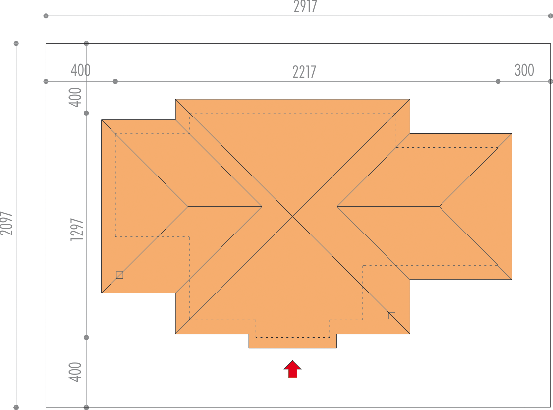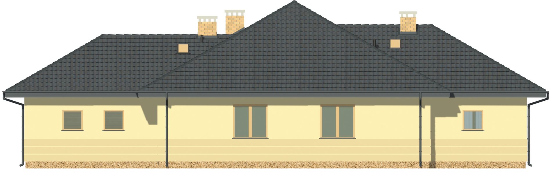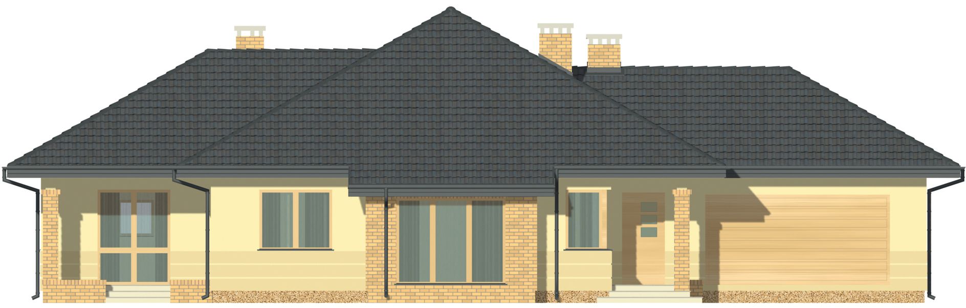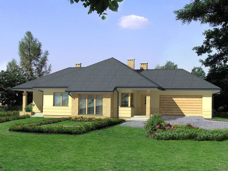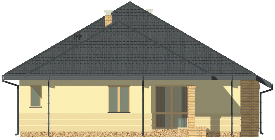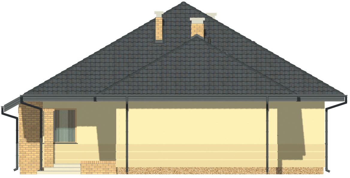 Graficzne opracowanie rzutów poglądowych widocznych na karcie projektu zostało wykonane przez Extradom.pl. Prezentowane przez Extradom.pl wizualizacje wykonane zostały przez autora projektu i należy poczytywać je jedynie za przykład i propozycję wykończenia, wizję architektoniczną autora projektu. Ostateczne wykończenie budynku może nastąpić na wiele sposobów. Szczegółowe rozwiązania zastosowane w oferowanej dokumentacji - w tym również ilość, lokalizacje i wygląd okien, drzwi, kominów - mogą w niewielkim stopniu różnić się od prezentowanej wizualizacji budynku.