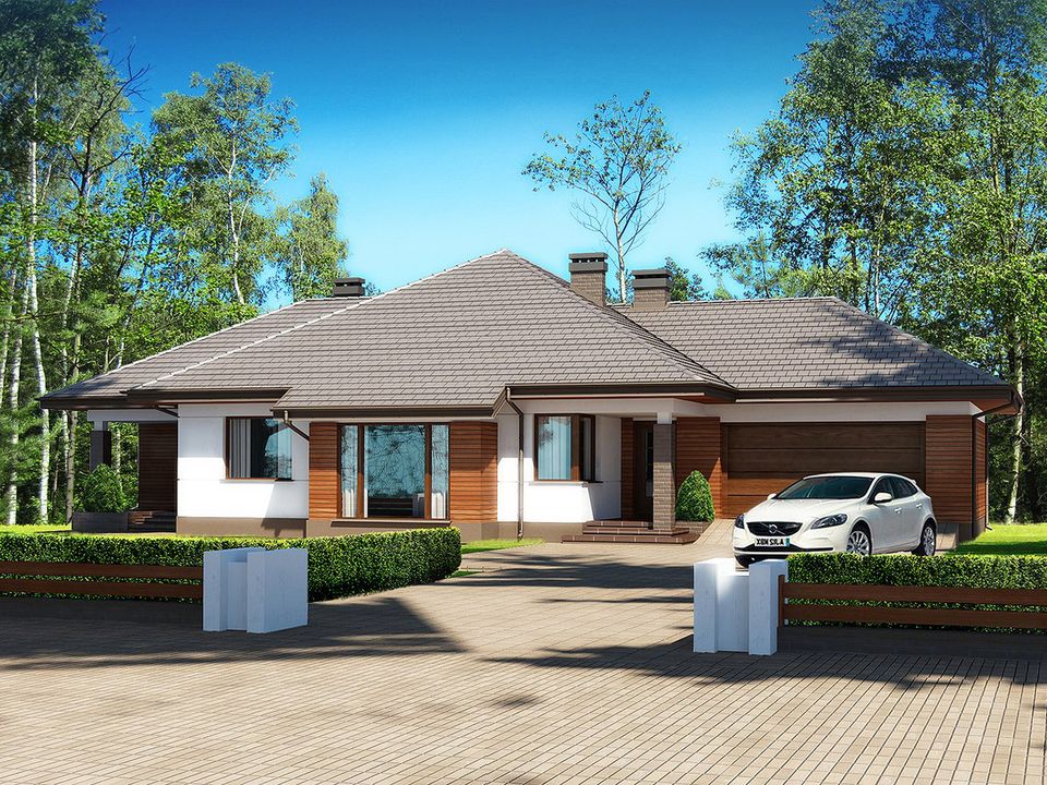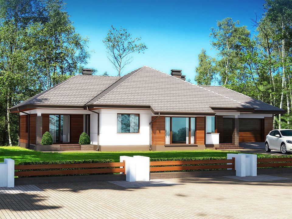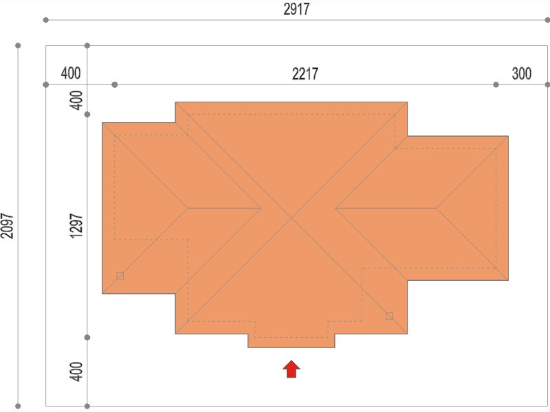 Graficzne opracowanie rzutów poglądowych widocznych na karcie projektu zostało wykonane przez Extradom.pl. Prezentowane przez Extradom.pl wizualizacje wykonane zostały przez autora projektu i należy poczytywać je jedynie za przykład i propozycję wykończenia, wizję architektoniczną autora projektu. Ostateczne wykończenie budynku może nastąpić na wiele sposobów. Szczegółowe rozwiązania zastosowane w oferowanej dokumentacji - w tym również ilość, lokalizacje i wygląd okien, drzwi, kominów - mogą w niewielkim stopniu różnić się od prezentowanej wizualizacji budynku.