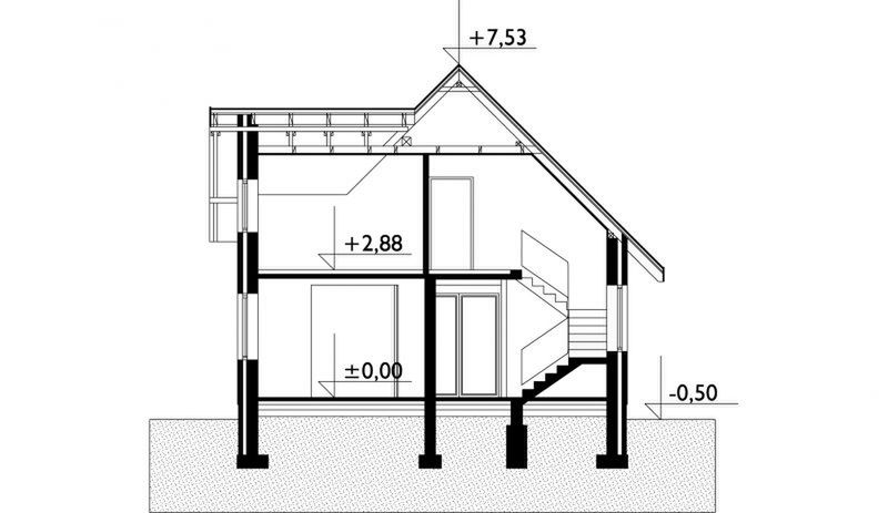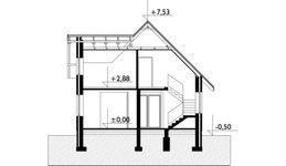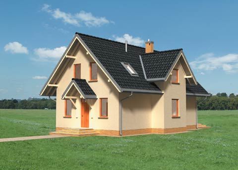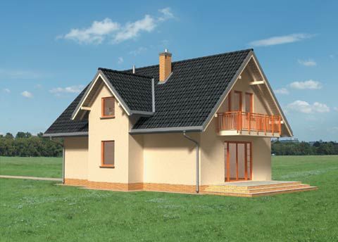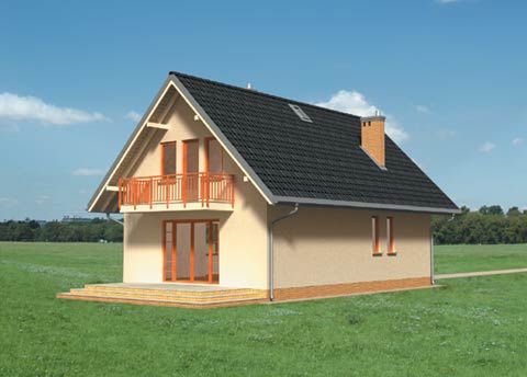 Graficzne opracowanie rzutów poglądowych widocznych na karcie projektu zostało wykonane przez Extradom.pl. Prezentowane przez Extradom.pl wizualizacje wykonane zostały przez autora projektu i należy poczytywać je jedynie za przykład i propozycję wykończenia, wizję architektoniczną autora projektu. Ostateczne wykończenie budynku może nastąpić na wiele sposobów. Szczegółowe rozwiązania zastosowane w oferowanej dokumentacji - w tym również ilość, lokalizacje i wygląd okien, drzwi, kominów - mogą w niewielkim stopniu różnić się od prezentowanej wizualizacji budynku.