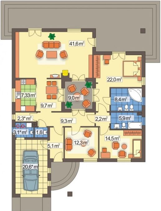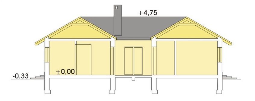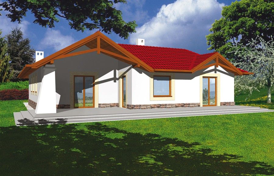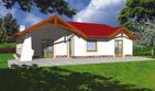 Graficzne opracowanie rzutów poglądowych widocznych na karcie projektu zostało wykonane przez Extradom.pl. Prezentowane przez Extradom.pl wizualizacje wykonane zostały przez autora projektu i należy poczytywać je jedynie za przykład i propozycję wykończenia, wizję architektoniczną autora projektu. Ostateczne wykończenie budynku może nastąpić na wiele sposobów. Szczegółowe rozwiązania zastosowane w oferowanej dokumentacji - w tym również ilość, lokalizacje i wygląd okien, drzwi, kominów - mogą w niewielkim stopniu różnić się od prezentowanej wizualizacji budynku.