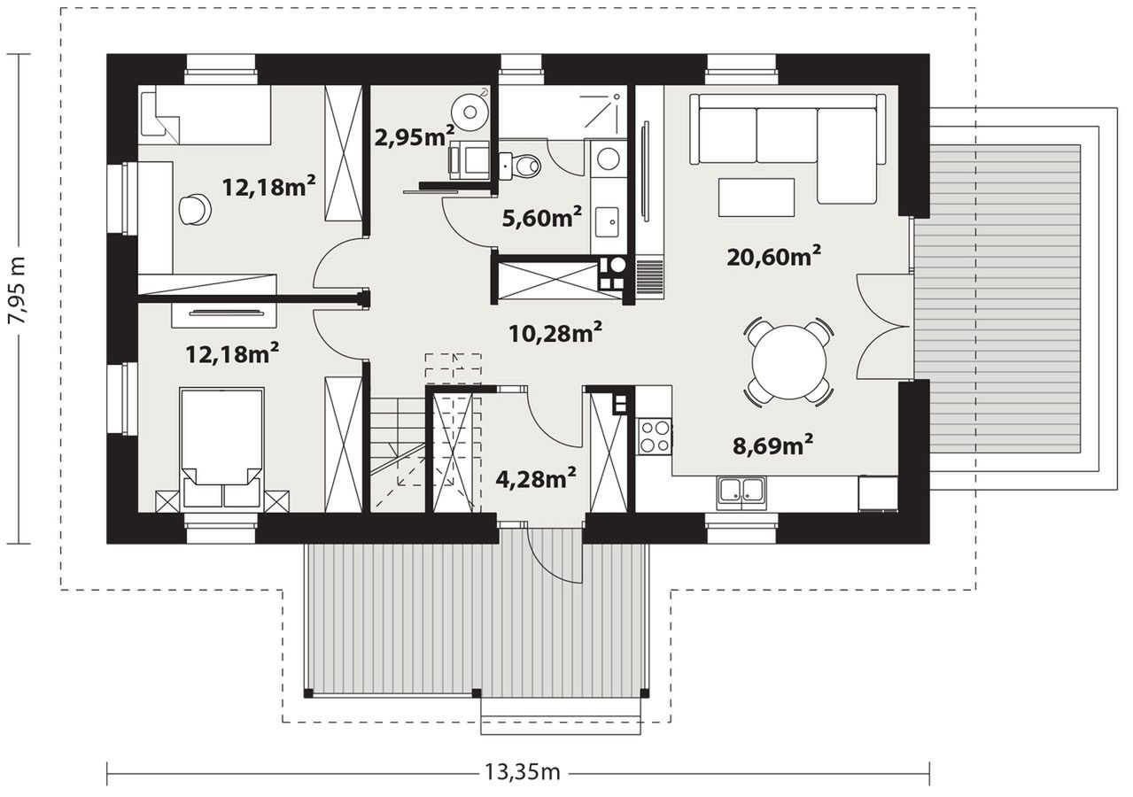 Istnieje możliwość zaadaptowania tego projektu do technologii prefabrykowanej/modułowej i budowy nawet w 6 miesięcy ze stałym kosztem budowy