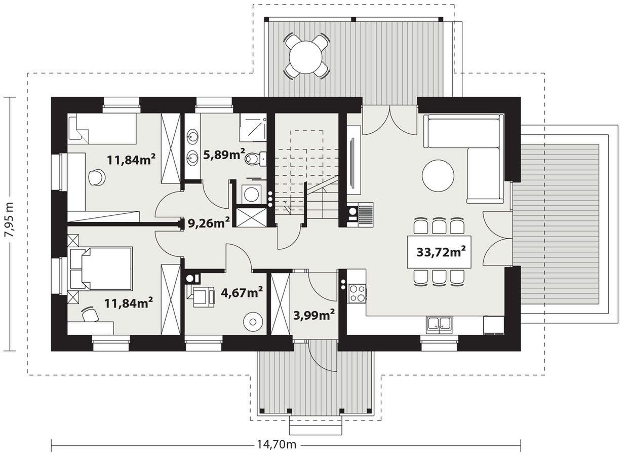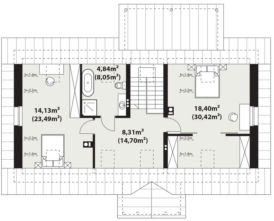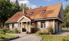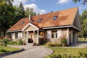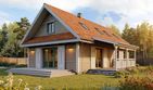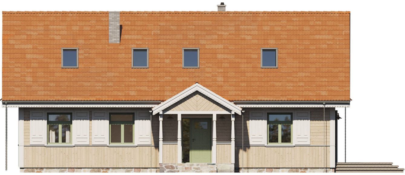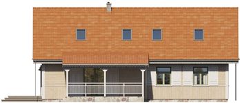 Graficzne opracowanie rzutów poglądowych widocznych na karcie projektu zostało wykonane przez Extradom.pl. Prezentowane przez Extradom.pl wizualizacje wykonane zostały przez autora projektu i należy poczytywać je jedynie za przykład i propozycję wykończenia, wizję architektoniczną autora projektu. Ostateczne wykończenie budynku może nastąpić na wiele sposobów. Szczegółowe rozwiązania zastosowane w oferowanej dokumentacji - w tym również ilość, lokalizacje i wygląd okien, drzwi, kominów - mogą w niewielkim stopniu różnić się od prezentowanej wizualizacji budynku.