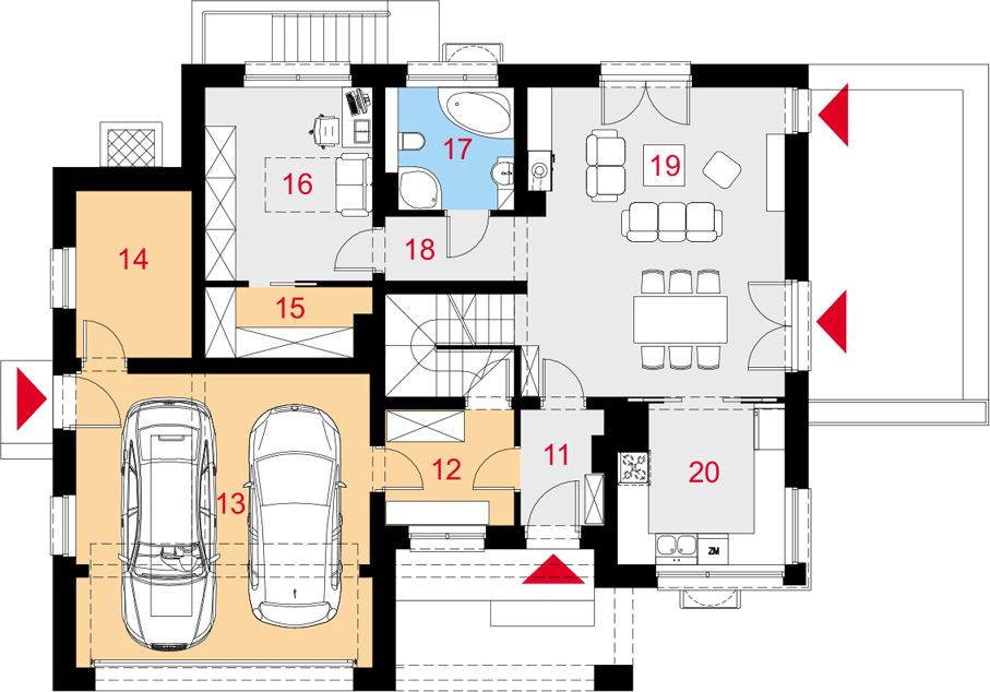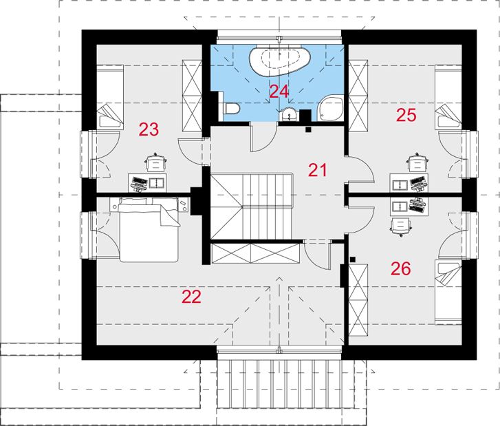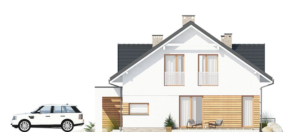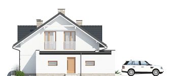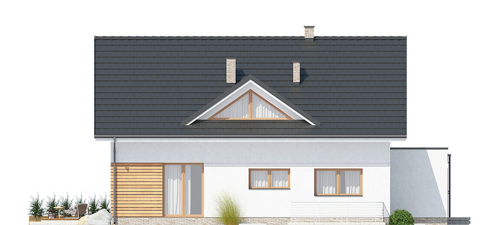 Graficzne opracowanie rzutów poglądowych widocznych na karcie projektu zostało wykonane przez Extradom.pl. Prezentowane przez Extradom.pl wizualizacje wykonane zostały przez autora projektu i należy poczytywać je jedynie za przykład i propozycję wykończenia, wizję architektoniczną autora projektu. Ostateczne wykończenie budynku może nastąpić na wiele sposobów. Szczegółowe rozwiązania zastosowane w oferowanej dokumentacji - w tym również ilość, lokalizacje i wygląd okien, drzwi, kominów - mogą w niewielkim stopniu różnić się od prezentowanej wizualizacji budynku.