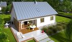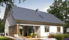 Fundamenty: ławy, bloczki betonowe 24 cm, ocieplenie styropian 15 cm. Ściany zewnętrzne: murowane, murowane, beton komórkowy firmy H+H, ocieplenie Termo Organika 20 cm. Ściany wewnętrzne: murowane, bloczki betonu komórkowego firmy H+H, ściany nośne 24 cm, ścianki działowe 12 cm. Podłoga na gruncie: płyta betonowa, ocieplenie styropian 15 cm. Strop: strop gęstożebrowy Teriva, ocieplenie wełna mineralna Isover 30 cm. Dach: konstrukcja drewniana, blacha na rąbek stojący Classic firmy Ruukki, w przypadku wykorzystania poddasza jako mieszkalne - ocieplenie dachu: wełna mineralna 30 cm, więźba dachowa dostępna również w systemie prefabrykacji drewnianej Rozwiązania instalacje. Ogrzewanie: kocioł gazowy kondensacyjny, rozprowadzenie ciepła: grzejniki. Wentylacja: grawitacyjna. OZE: kolektory słoneczne. Elewacje: tynk cienkowarstwowy mineralny, okładzina z płyty HPL z naturalną okleiną drewnianą firmy Prodema. Stolarka: drewniana, PVC lub aluminiowa, drzwi wejściowe firmy Hörmann. Okna połaciowe: rozwiązania technologiczne firmy VELUX wyłaz dachowy VELUX. Inne: w przypadku wykorzystania poddasza jako mieszkalne - schody wewnętrzne drewniane. Otoczenie: system tarasowy ProDeck - deska kompozytowa Terra w kolorze platyna i wiśnia.