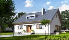 Graficzne opracowanie rzutów poglądowych widocznych na karcie projektu zostało wykonane przez Extradom.pl. Prezentowane przez Extradom.pl wizualizacje wykonane zostały przez autora projektu i należy poczytywać je jedynie za przykład i propozycję wykończenia, wizję architektoniczną autora projektu. Ostateczne wykończenie budynku może nastąpić na wiele sposobów. Szczegółowe rozwiązania zastosowane w oferowanej dokumentacji - w tym również ilość, lokalizacje i wygląd okien, drzwi, kominów - mogą w niewielkim stopniu różnić się od prezentowanej wizualizacji budynku.