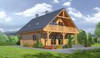 Graficzne opracowanie rzutów poglądowych widocznych na karcie projektu zostało wykonane przez Extradom.pl. Prezentowane przez Extradom.pl wizualizacje wykonane zostały przez autora projektu i należy poczytywać je jedynie za przykład i propozycję wykończenia, wizję architektoniczną autora projektu. Ostateczne wykończenie budynku może nastąpić na wiele sposobów. Szczegółowe rozwiązania zastosowane w oferowanej dokumentacji - w tym również ilość, lokalizacje i wygląd okien, drzwi, kominów - mogą w niewielkim stopniu różnić się od prezentowanej wizualizacji budynku.