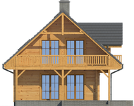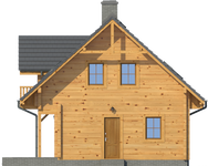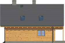 Wysokość ścianki kolankowej: 0.92 m. Strop: drewniany. Pokrycie dachu: dachówka gontopodobna Gerard Corona. Ściany zewnętrzne: płazy drewniane + wełna mineralna + deska. Ściany wewnętrzne: płazy drewniane. Typ ogrzewania: kocioł gazowy lub kocioł na paliwo stałe. Inne: okna połaciowe Velux.