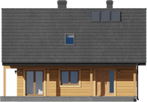 Graficzne opracowanie rzutów poglądowych widocznych na karcie projektu zostało wykonane przez Extradom.pl. Prezentowane przez Extradom.pl wizualizacje wykonane zostały przez autora projektu i należy poczytywać je jedynie za przykład i propozycję wykończenia, wizję architektoniczną autora projektu. Ostateczne wykończenie budynku może nastąpić na wiele sposobów. Szczegółowe rozwiązania zastosowane w oferowanej dokumentacji - w tym również ilość, lokalizacje i wygląd okien, drzwi, kominów - mogą w niewielkim stopniu różnić się od prezentowanej wizualizacji budynku.