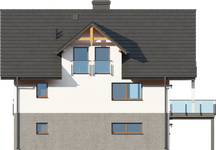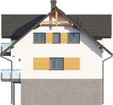 Graficzne opracowanie rzutów poglądowych widocznych na karcie projektu zostało wykonane przez Extradom.pl. Prezentowane przez Extradom.pl wizualizacje wykonane zostały przez autora projektu i należy poczytywać je jedynie za przykład i propozycję wykończenia, wizję architektoniczną autora projektu. Ostateczne wykończenie budynku może nastąpić na wiele sposobów. Szczegółowe rozwiązania zastosowane w oferowanej dokumentacji - w tym również ilość, lokalizacje i wygląd okien, drzwi, kominów - mogą w niewielkim stopniu różnić się od prezentowanej wizualizacji budynku.