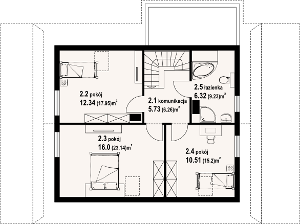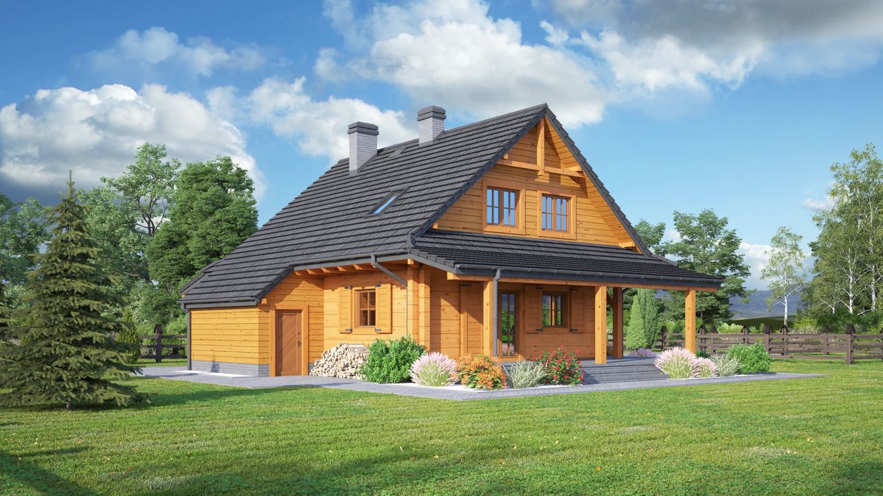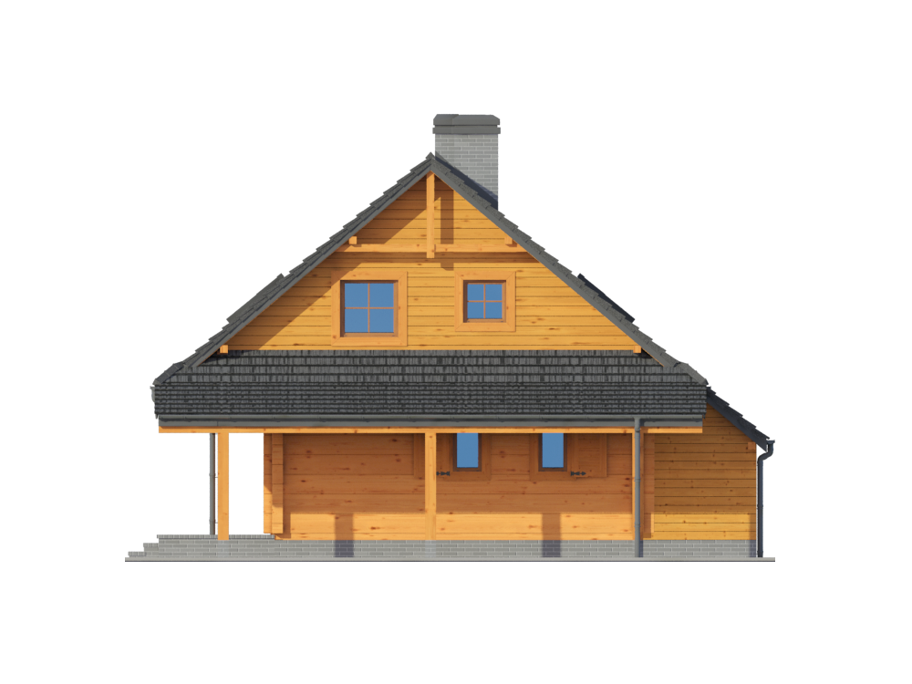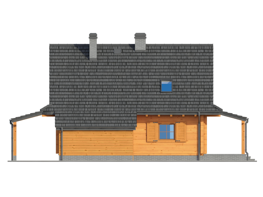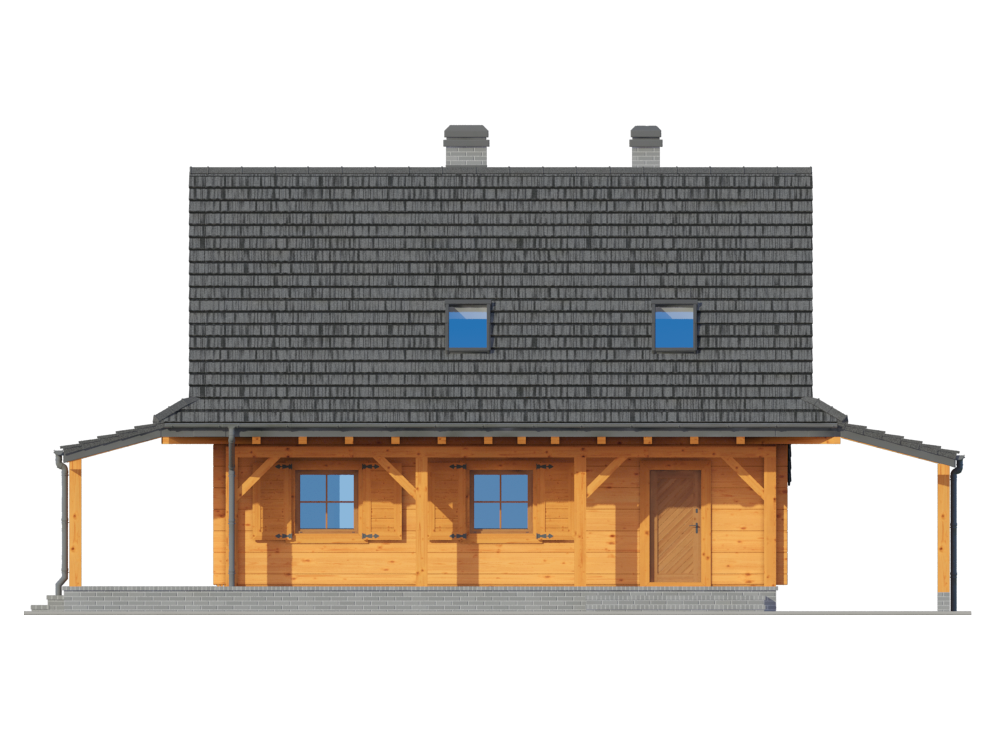 Graficzne opracowanie rzutów poglądowych widocznych na karcie projektu zostało wykonane przez Extradom.pl. Prezentowane przez Extradom.pl wizualizacje wykonane zostały przez autora projektu i należy poczytywać je jedynie za przykład i propozycję wykończenia, wizję architektoniczną autora projektu. Ostateczne wykończenie budynku może nastąpić na wiele sposobów. Szczegółowe rozwiązania zastosowane w oferowanej dokumentacji - w tym również ilość, lokalizacje i wygląd okien, drzwi, kominów - mogą w niewielkim stopniu różnić się od prezentowanej wizualizacji budynku.