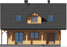 Wysokość ścianki kolankowej: 0.65 m. Ilość drewna na więźbę: 6.12 m³. Strop: drewniany. Pokrycie dachu: dachówka gontopodobna Gerard Corona. Ściany zewnętrzne: szkieletowe drewniane ocieplone wełną mineralną. Ściany wewnętrzne: szkieletowe drewniane. Typ ogrzewania: kocioł gazowy lub kocioł na paliwo stałe. Inne: okna połaciowe Velux.