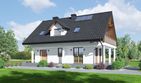 Graficzne opracowanie rzutów poglądowych widocznych na karcie projektu zostało wykonane przez Extradom.pl. Prezentowane przez Extradom.pl wizualizacje wykonane zostały przez autora projektu i należy poczytywać je jedynie za przykład i propozycję wykończenia, wizję architektoniczną autora projektu. Ostateczne wykończenie budynku może nastąpić na wiele sposobów. Szczegółowe rozwiązania zastosowane w oferowanej dokumentacji - w tym również ilość, lokalizacje i wygląd okien, drzwi, kominów - mogą w niewielkim stopniu różnić się od prezentowanej wizualizacji budynku.