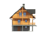 Graficzne opracowanie rzutów poglądowych widocznych na karcie projektu zostało wykonane przez Extradom.pl. Prezentowane przez Extradom.pl wizualizacje wykonane zostały przez autora projektu i należy poczytywać je jedynie za przykład i propozycję wykończenia, wizję architektoniczną autora projektu. Ostateczne wykończenie budynku może nastąpić na wiele sposobów. Szczegółowe rozwiązania zastosowane w oferowanej dokumentacji - w tym również ilość, lokalizacje i wygląd okien, drzwi, kominów - mogą w niewielkim stopniu różnić się od prezentowanej wizualizacji budynku.