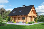 Wysokość ścianki kolankowej: 0.81 m. Strop: drewniany. Pokrycie dachu: dachówka gontopodobna Gerard Corona. Ściany zewnętrzne: płazy drewniane + wełna mineralna + deska. Ściany wewnętrzne: płazy drewniane. Typ ogrzewania: kocioł na paliwo stałe. Instalacje dodatkowe: kocioł na gaz płynny. Inne: okna połaciowe Velux.
