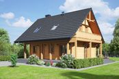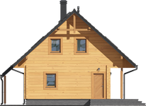 Wysokość ścianki kolankowej: 0.7 m. Strop: drewniany. Pokrycie dachu: dachówka gontopodobna Gerard Corona. Ściany zewnętrzne: płazy drewniane + wełna mineralna + deska. Ściany wewnętrzne: płazy drewniane. Typ ogrzewania: kocioł gazowy lub kocioł na paliwo stałe. Instalacje dodatkowe: instalacja solarna. Inne: okna połaciowe Velux.