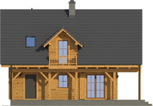 Wysokość ścianki kolankowej: 0.82 m. Ilość drewna na więźbę: 8.18 m³. Strop: drewniany. Pokrycie dachu: dachówka gontopodobna Gerard Corona. Ściany zewnętrzne: płazy drewniane + wełna mineralna + deska. Ściany wewnętrzne: płazy drewniane. Typ ogrzewania: ogrzewanie elektryczne + kominek na biomasę. Instalacje dodatkowe: instalacja solarna. Inne: okna połaciowe Velux.