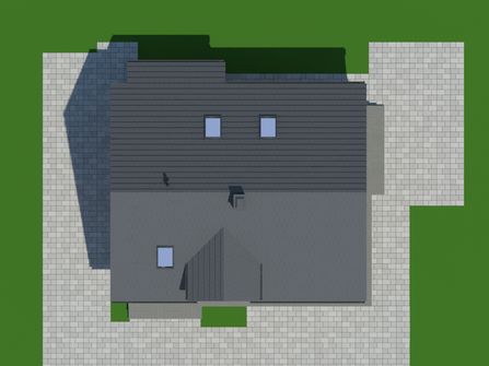 Graficzne opracowanie rzutów poglądowych widocznych na karcie projektu zostało wykonane przez Extradom.pl. Prezentowane przez Extradom.pl wizualizacje wykonane zostały przez autora projektu i należy poczytywać je jedynie za przykład i propozycję wykończenia, wizję architektoniczną autora projektu. Ostateczne wykończenie budynku może nastąpić na wiele sposobów. Szczegółowe rozwiązania zastosowane w oferowanej dokumentacji - w tym również ilość, lokalizacje i wygląd okien, drzwi, kominów - mogą w niewielkim stopniu różnić się od prezentowanej wizualizacji budynku.