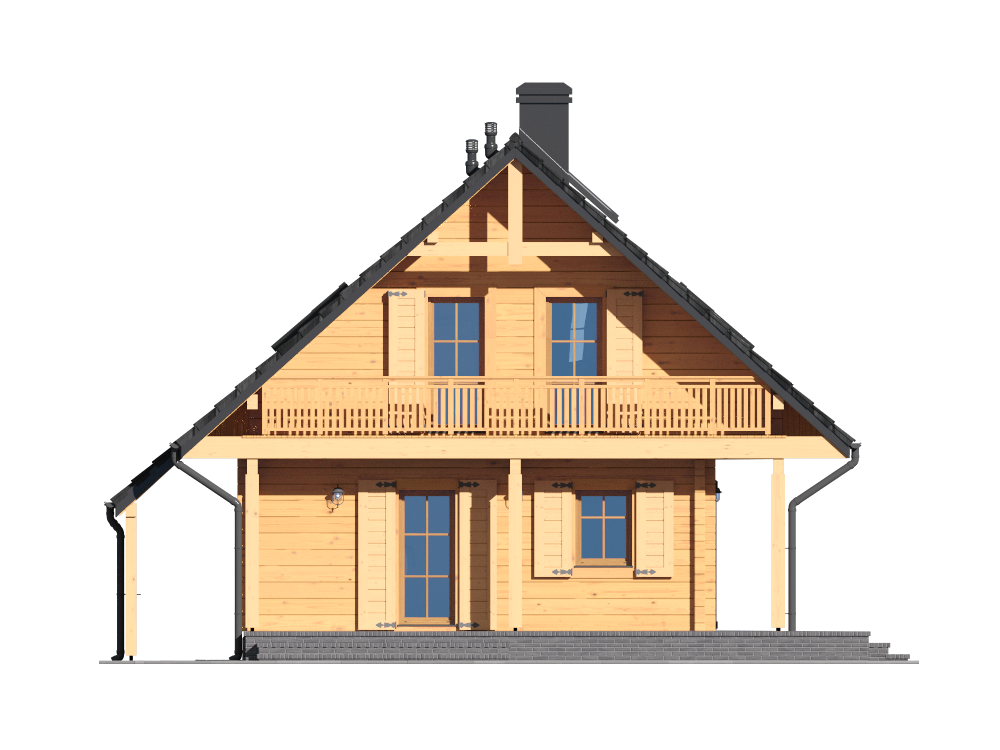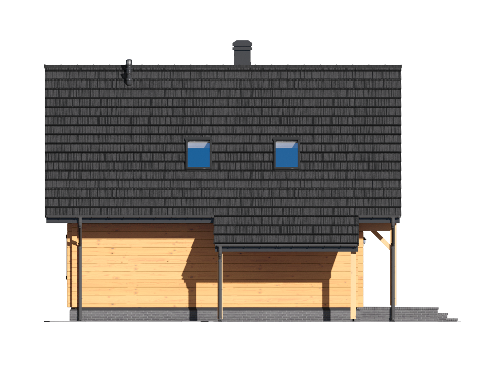 Graficzne opracowanie rzutów poglądowych widocznych na karcie projektu zostało wykonane przez Extradom.pl. Prezentowane przez Extradom.pl wizualizacje wykonane zostały przez autora projektu i należy poczytywać je jedynie za przykład i propozycję wykończenia, wizję architektoniczną autora projektu. Ostateczne wykończenie budynku może nastąpić na wiele sposobów. Szczegółowe rozwiązania zastosowane w oferowanej dokumentacji - w tym również ilość, lokalizacje i wygląd okien, drzwi, kominów - mogą w niewielkim stopniu różnić się od prezentowanej wizualizacji budynku.